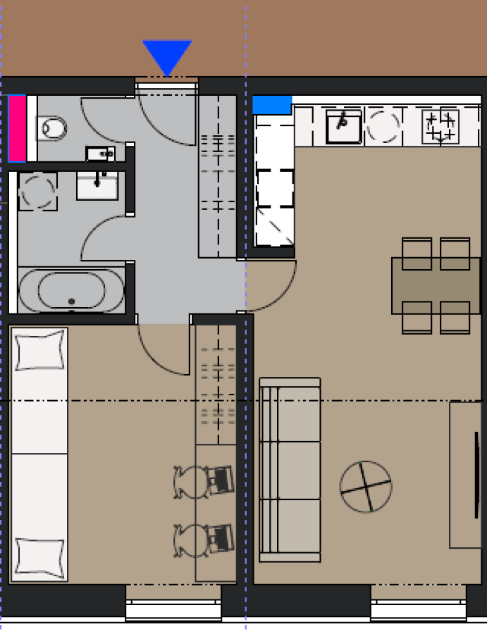 Vstup do domu bude zajištěn dvěma hlavními vstupy. Součástí stavby bude kolárna a parkovací stání, z nichž některá budou umožňovat nabíjení elektromobilů.