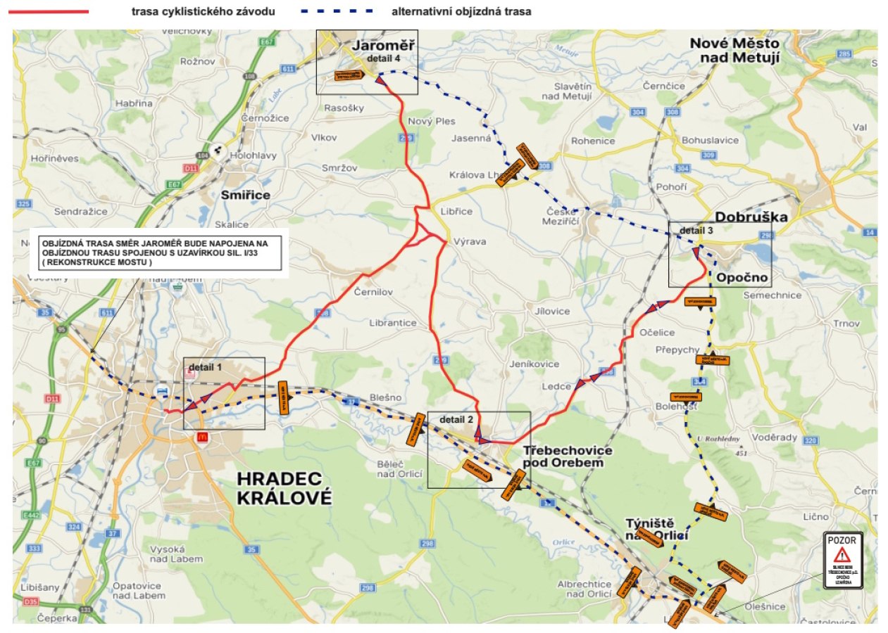 Cca v 8 hodin se začne uzavírat úsek Černilov – Výrava – Librantice – Třebechovice – Ledce – Očelice – Opočno. Hlavní závod startuje v 9,30 hod.