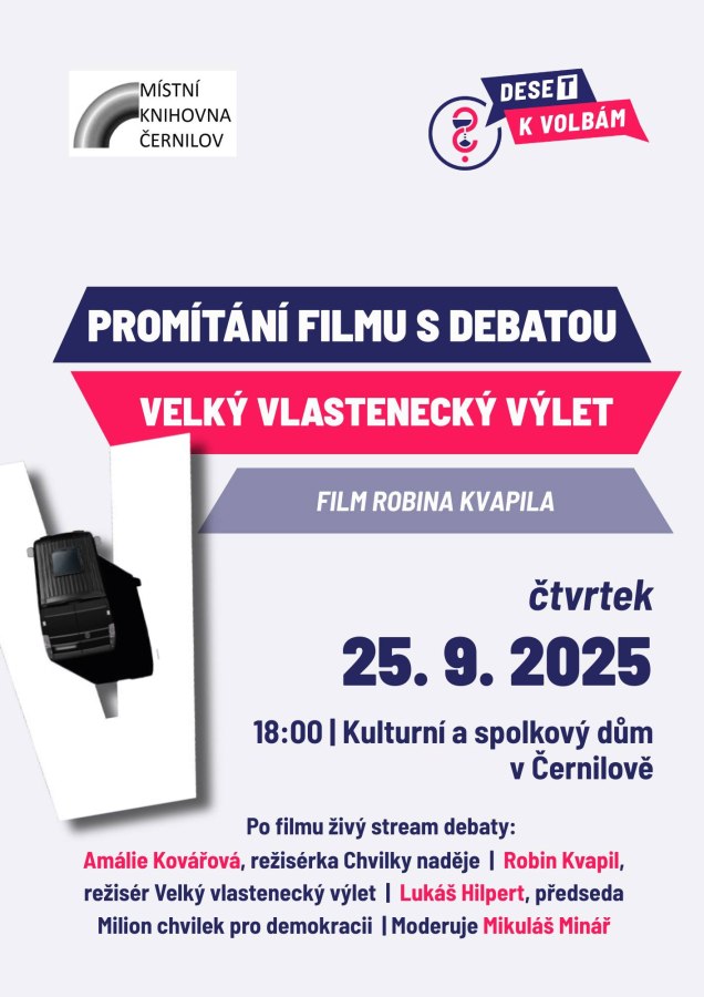 Po projekci filmu bude streamována beseda s jeho režisérem Robinem Kvapilem, režisérkou filmu Chvilky naděje Amálií Kovářovou a předsedou spolku Milion chvilek pro demokracii. Besedu bude moderovat Mikuláš Minář.